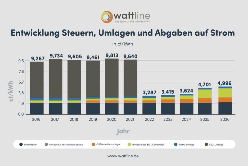 Umlagen auf Strom für 2026 veröffentlicht: Anstieg um 11,13 % zum Vorjahr