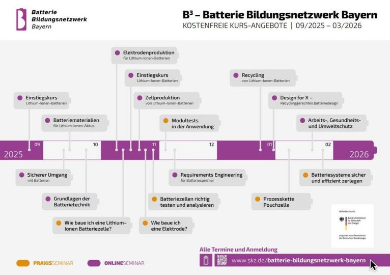 Das Projekt B³ – Batteriebildungsnetzwerk Bayern unterstützt Unternehmen mit praxisnahen, kostenfreien Weiterbildungen auf dem Weg in die technologische Transformation. Ab September 2025 startet das Kursprogramm mit neuen Inhalten und Formaten…
