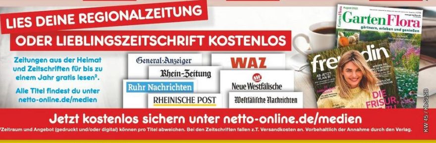 Der bekannte Werbeslogan „Dann geh doch zu Netto!“ gilt für die Kunden des Marken-Discounters zwei Mal pro Jahr auch für Lesestoff. Denn dann bietet Netto eine besonderen Aktion an: kostenlose…
