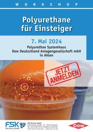 Am 07. Mai 2024 veranstaltet der Fachverband Schaumkunststoffe und Polyurethane (FSK e.V.) zusammen mit seinem Mitgliedsunternehmen Dow Deutschland Anlagengesellschaft mbH in Ahlen den FSK-Workshop „Polyurethane für EinsteigerInnen“. Der Workshop ist…