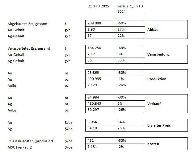 Update hinsichtlich Betrieb und Kapitalstruktur für 3. Quartal 2025 (seit Jahresbeginn)