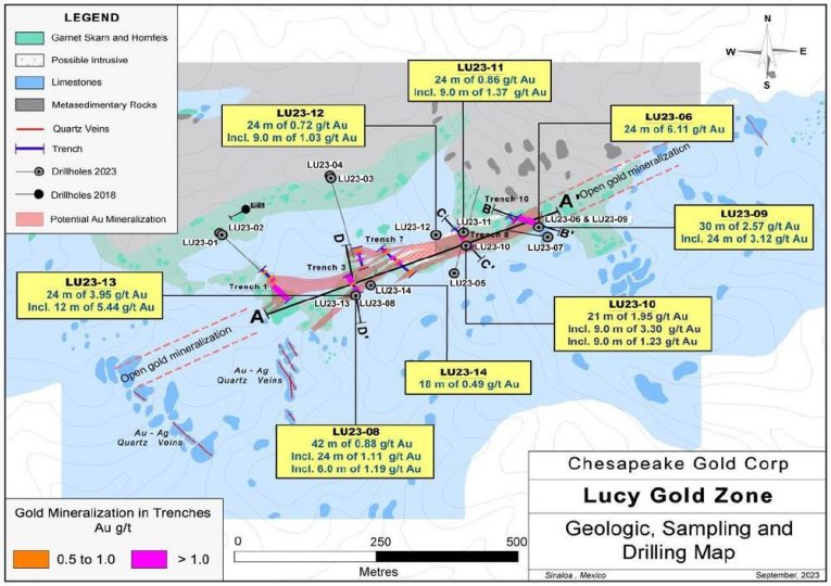 Chesapeake Gold Corp. (TSX-V: CKG, OTCQX: CHPGF) („Chesapeake“ oder das „Unternehmen“ – https://www.commodity-tv.com/ondemand/companies/profil/chesapeake-gold-corp/) freut sich, eine bedeutsame Goldentdeckung bei seinem Projekt Lucy („Lucy“) im Zentrum des mexikanischen Bundesstaates Sinaloa bekannt zu geben. Im Rahmen des Programms 2023…