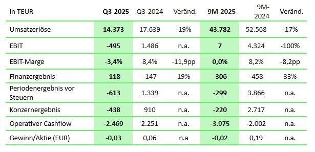 Umsatzerlöse von EUR 44 Mio. (-17 Prozent ggü. Vorjahresperiode) Operative EBIT-Marge von 0 Prozent Kernmarkt Deutschland: Umsatzerlöse von EUR 35,4 Mio. (-18 Prozent ggü. Vorjahresperiode) bei einer EBIT-Marge von…