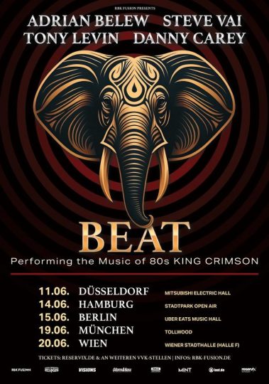BEAT – Adrian Belew, Steve Vai, Tony Levin & Danny Carey kündigen erste Europa-Tournee an