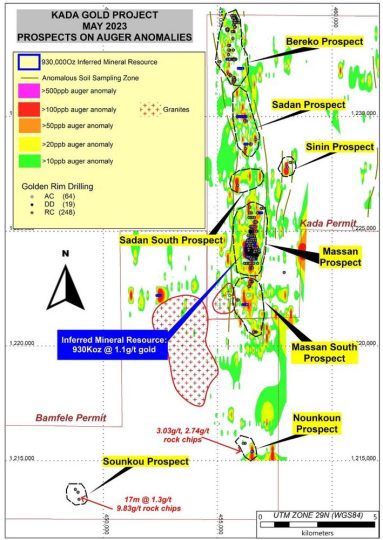 Schürfgrabungen bei Massan liefern 10 m mit 10,7 g/t Gold innerhalb von 128 m mit 3,1 g/t Gold